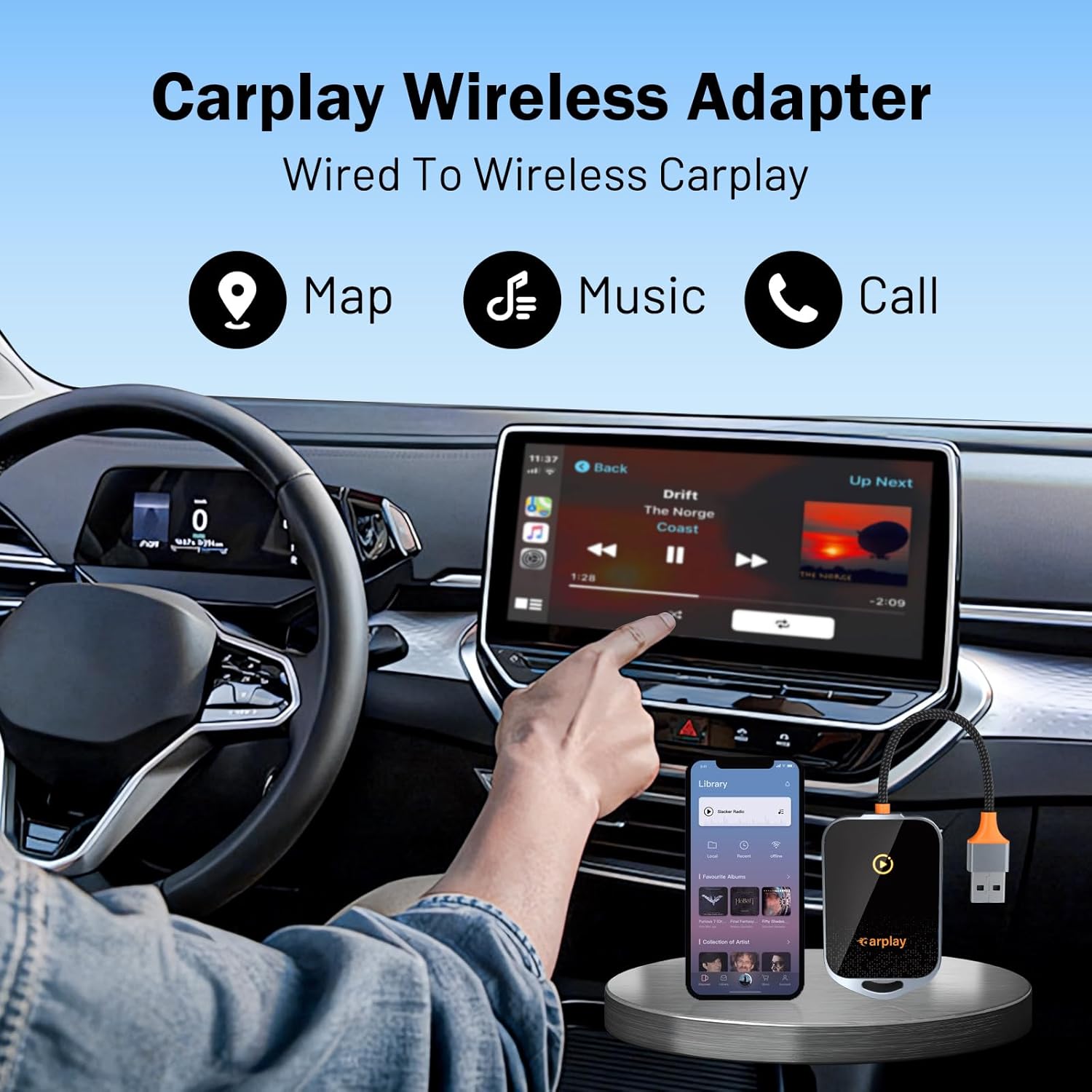 – حوّل تجربة القيادة الخاصة بك مع محول كار بلاي اللاسلكي، الذي يحوّل اتصال الكار بلاي السلكي في سيارتك إلى اتصال لاسلكي بسهولة. ما عليك سوى توصيل المحول بمنفذ USB الخاص بسيارتك، وسيتيح لك الاستمتاع بجميع ميزات كار بلاي دون الحاجة إلى كابلات مزعجة. استمتع بالوصول إلى الخرائط والموسيقى والمكالمات والرسائل من هاتفك الذكي مباشرة على شاشة السيارة بشكل لاسلكي وبجودة عالية.